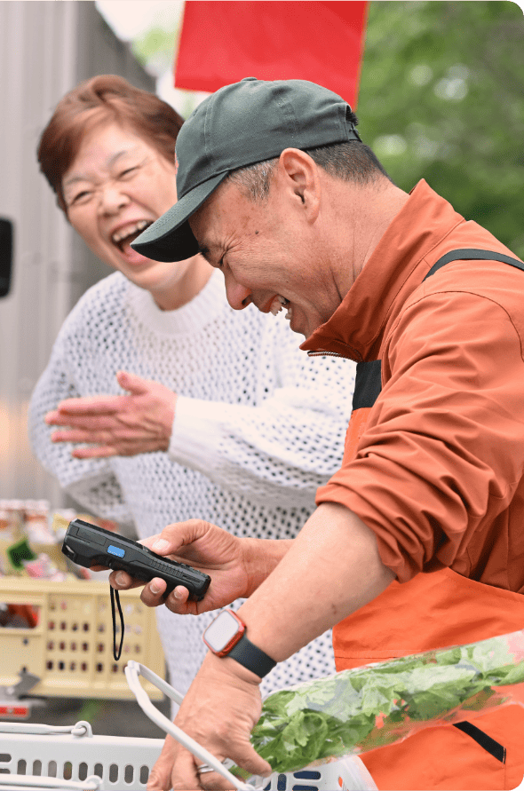 スーパーマーケットのとくし丸担当者の主導のもと、一緒に業務を行います。地道な作業ですが、最も重要な業務のため、きめ細やかにサポートします。