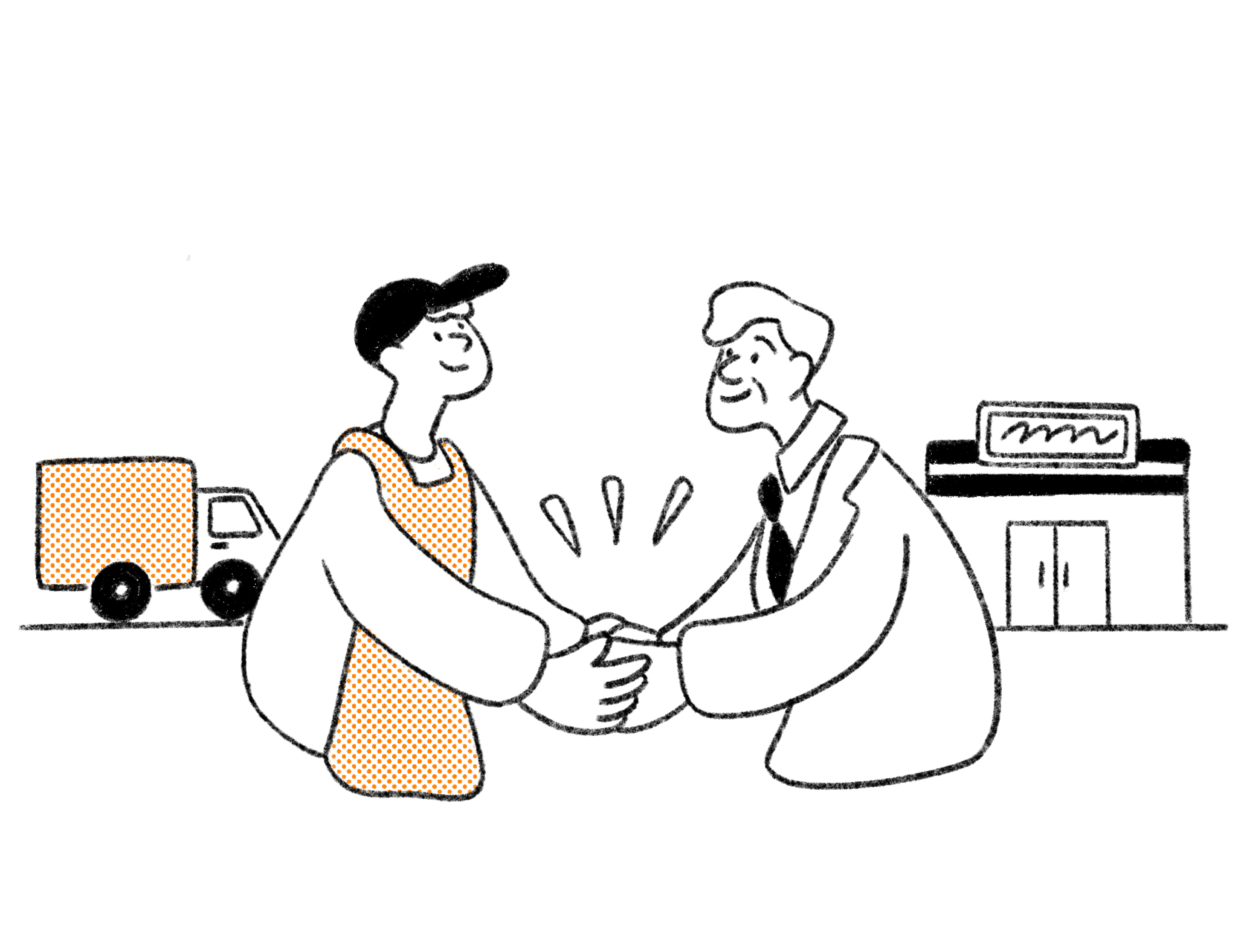 ご自身の管轄エリアのお客さまの買い物状況を、一軒一軒ヒアリングしていきます。とても地道な方法ではありますが、本当に買い物にお困りの方の生の声を自分自身で拾い上げていくことが、お客さまからの、ひいてはその地域からの信頼につながります。 急に一人でお客さま探しを行うことはないので、ご安心ください。開業前研修で、顧客開拓の方法のレクチャーがあります。さらに、実際にヒアリングを行う際にも、スーパーマーケットのとくし丸担当者などが同行し、サポートします。