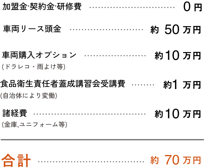 ※開業後、1〜2週間はスーパーマーケットのとくし丸担当者が同乗し、販売をサポートいたします。